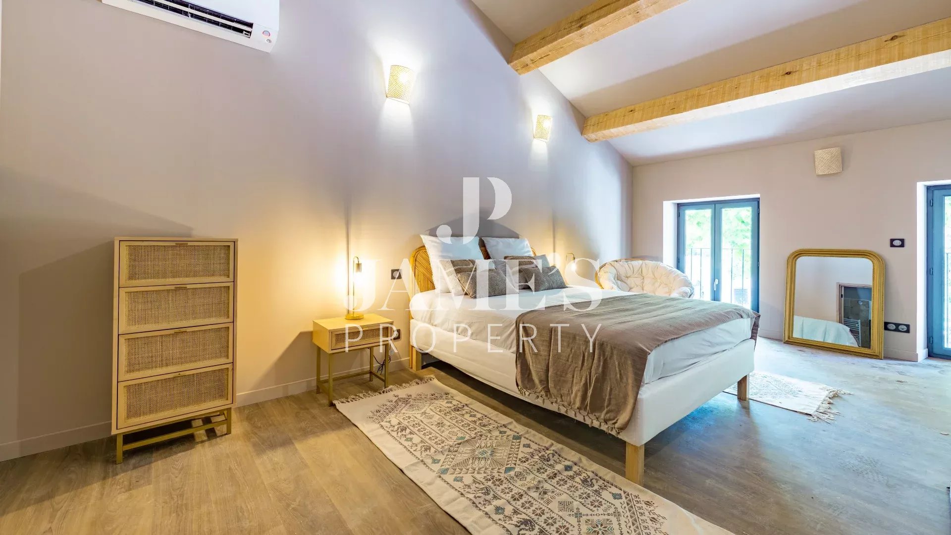 Le Mas se compose d'une cuisine artisanale entièrement équipée, ouverte sur un salon spacieux et lumineux. Les quatre chambres, toutes en suite, avec leurs salles de bains ou salles d'eau privatives, offrent un espace intime et raffiné. Deux de ces chambres se trouvent au rez-de-chaussée, idéales pour un accès facile.